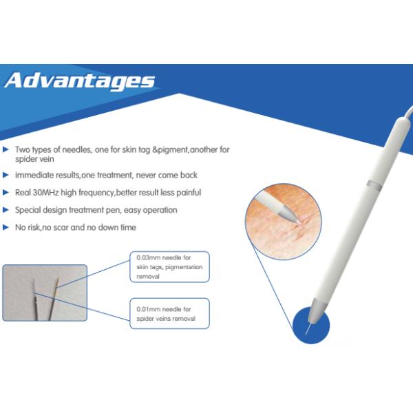 Together with professional 30Mhz high frequency and 0.01mm needle two advantages, the spider vein removal machine can achieve best treatment result and painless.